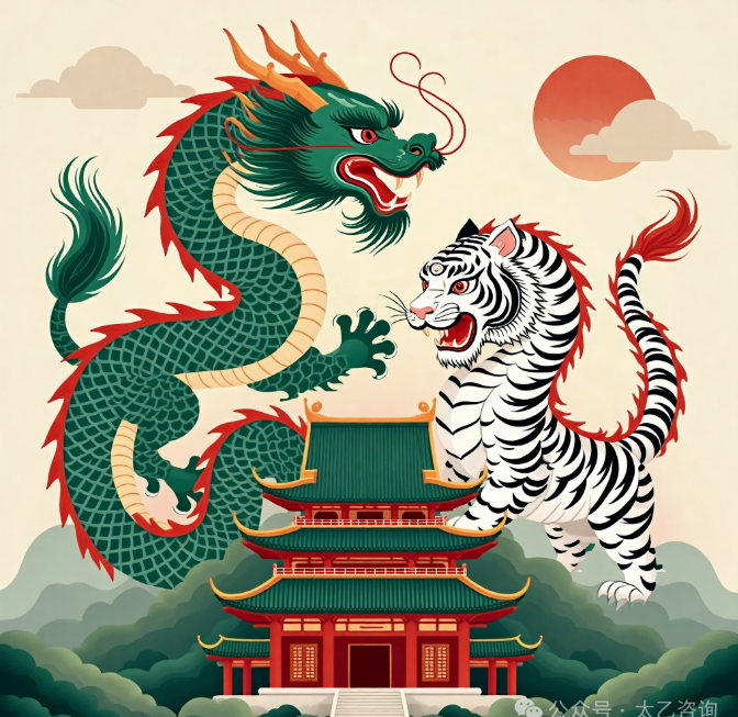 在风水布局中,常借助“四灵”(青龙、白虎、朱雀、玄武)的方位理论进行空间分析。理想格局应为:建筑左侧(青龙)宜高、宜动,象征阳刚与生机;右侧(白虎)宜低、宜静,代表阴柔与稳定。若青龙方高于白虎方,通常被视为吉利之象,反之则可能带来不利。此外,建筑后方(玄武)宜有靠山,象征稳固支持;前方(朱雀)则宜开阔明朗,利于气流聚集与视野延展。